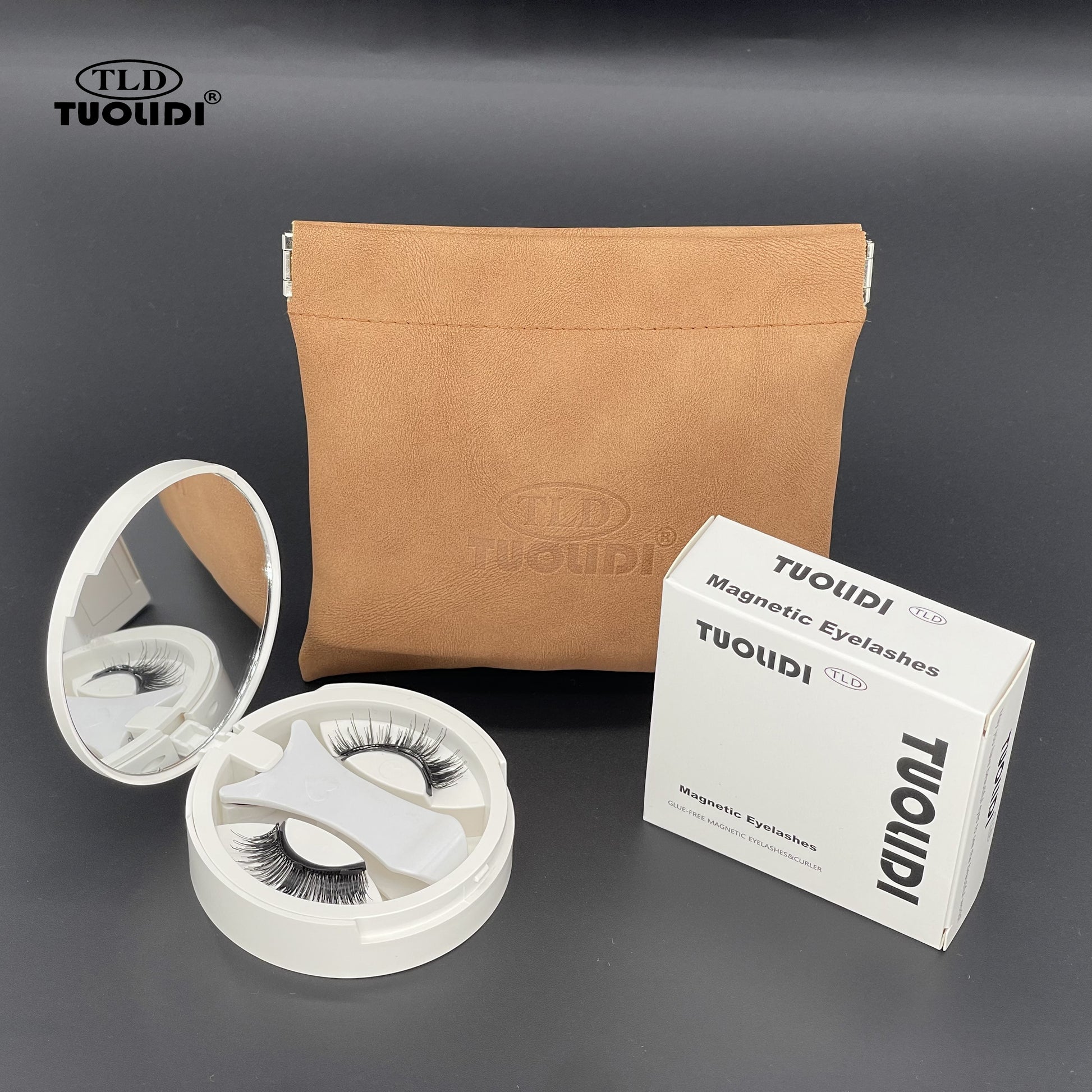 TUOLIDI Free customize photo/logo Magnetic Eyelashes kit with Leather Storage Bag Fluffy False Eyelashes set All-in-One Box, long-lasting, Reusable, Glue-Free, Waterproof, Lightweight, Natural Style Makeup Cosmetic