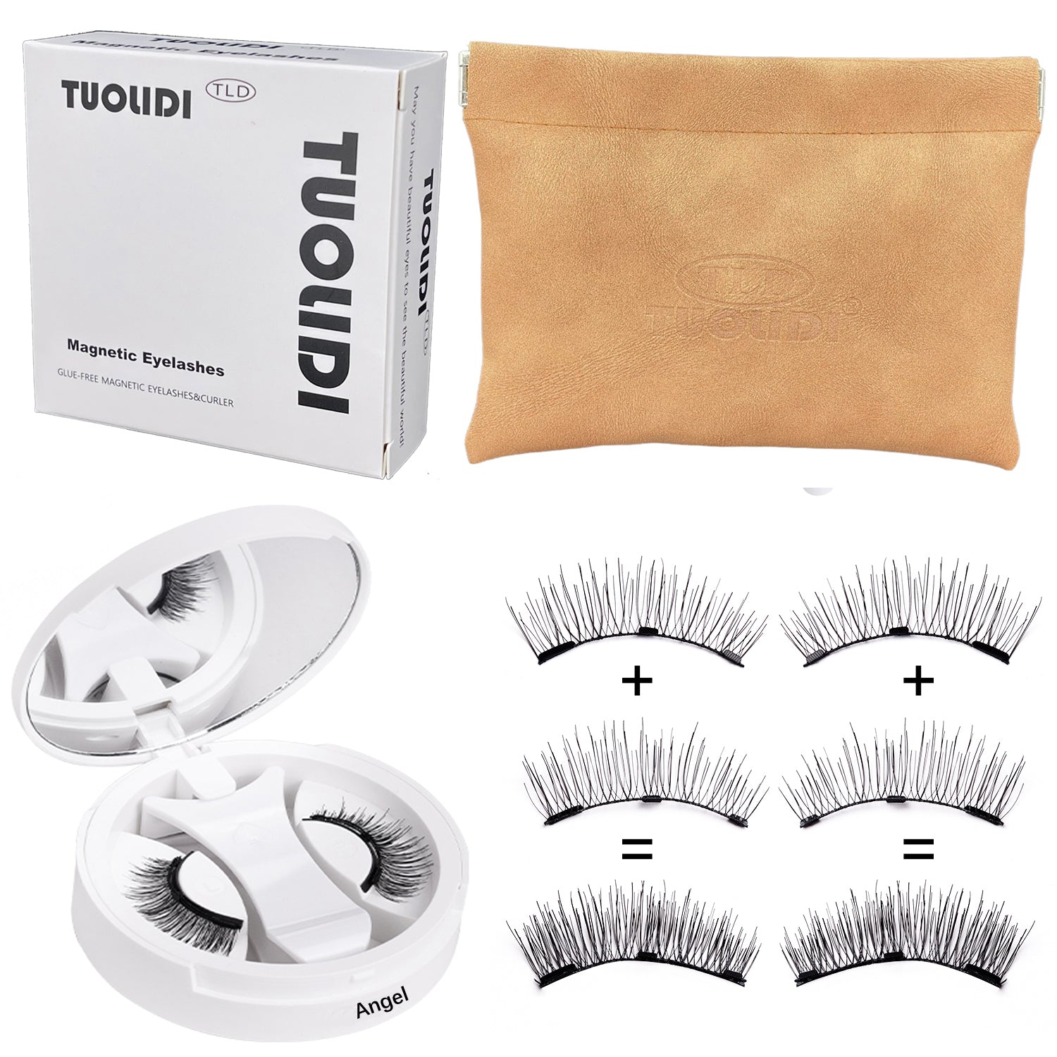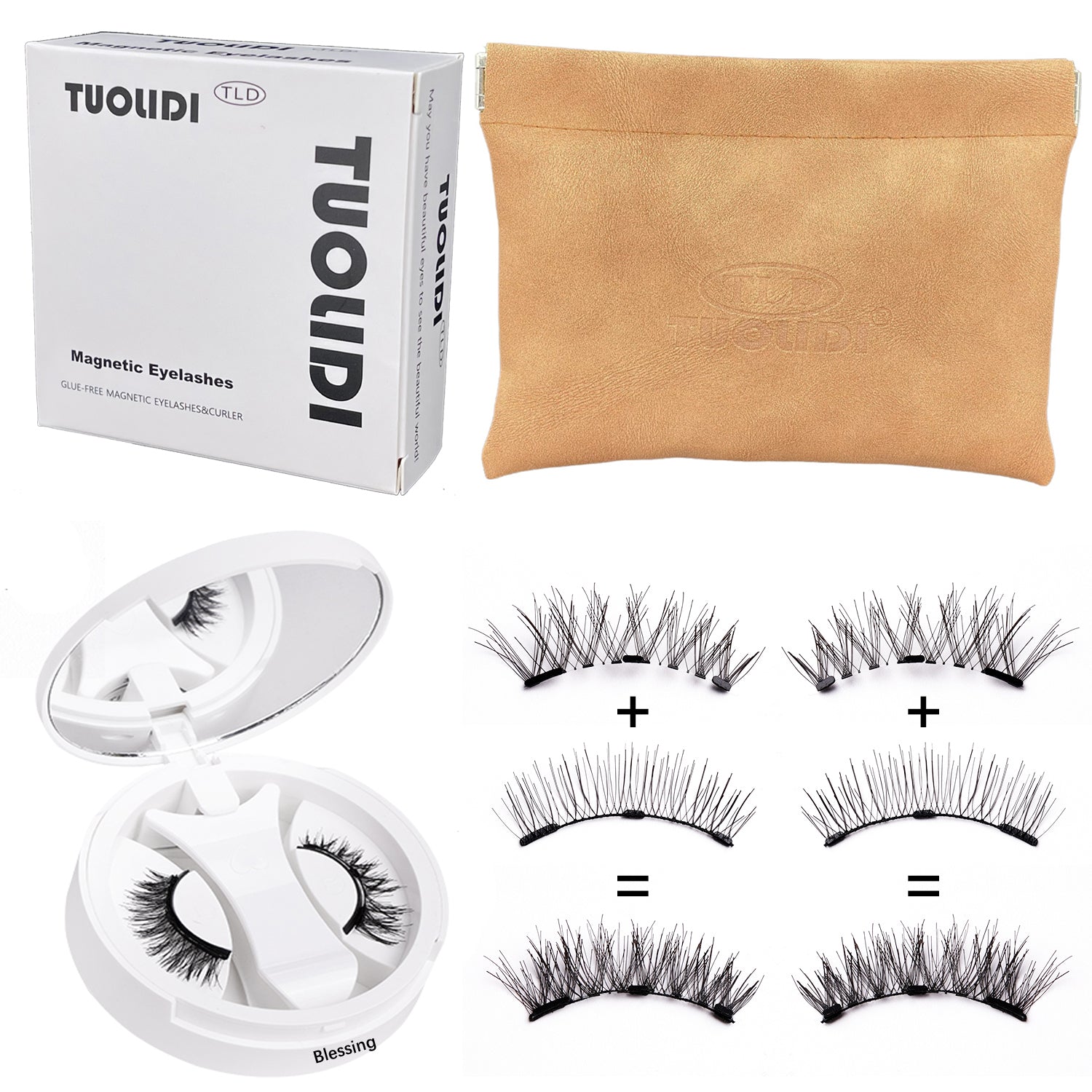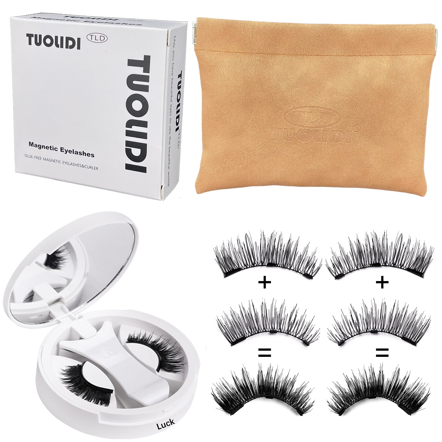 TUOLIDI Magnetic Eyelashes kit Waterproof, Lightweight, Fluffy False Eyelashes set with Leather Storage Bag All-in-One Box, long-lasting, Reusable, Glue-Free, Natural Style Makeup Cosmetic