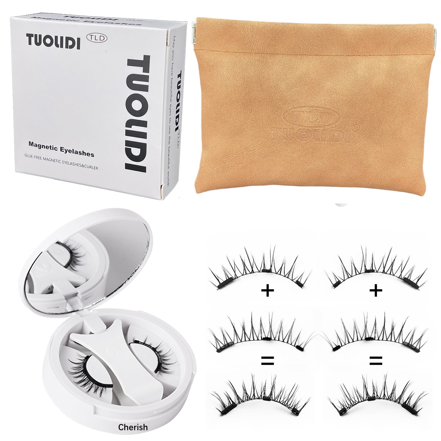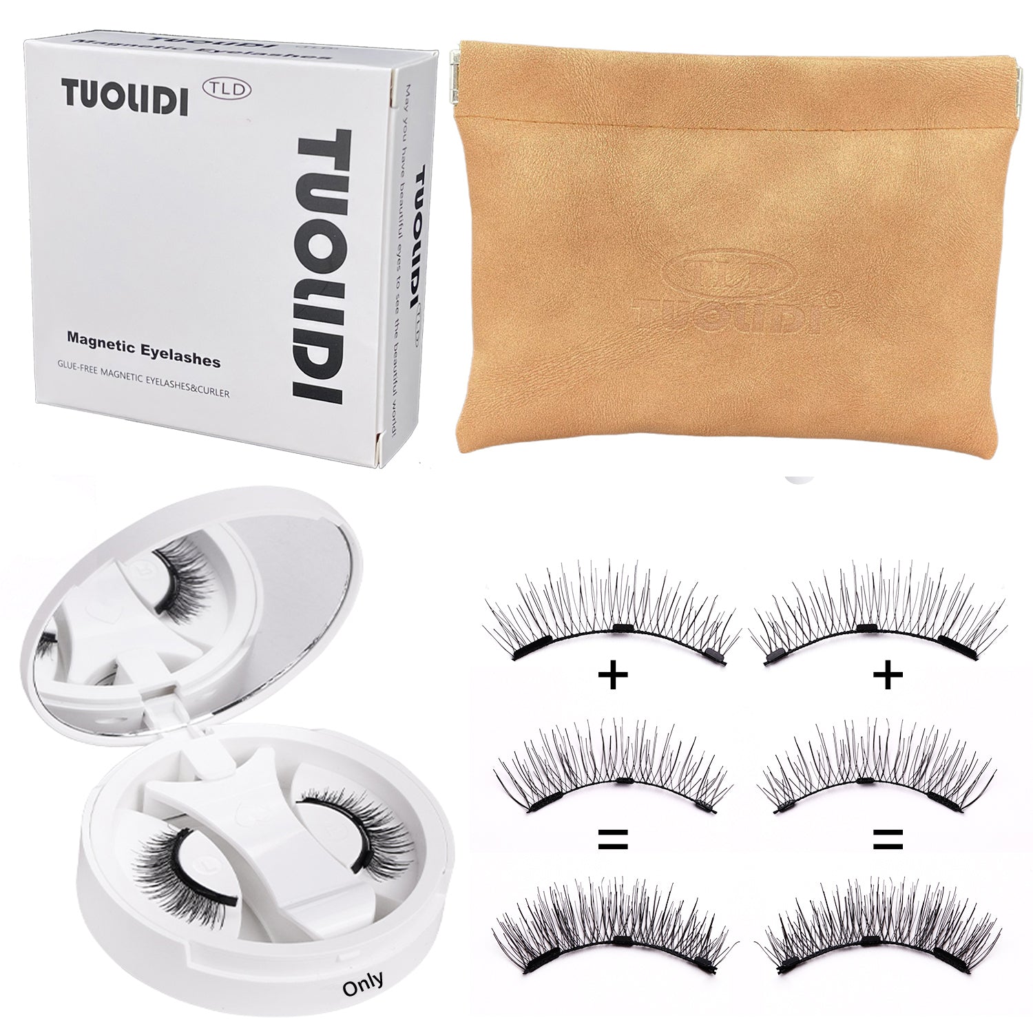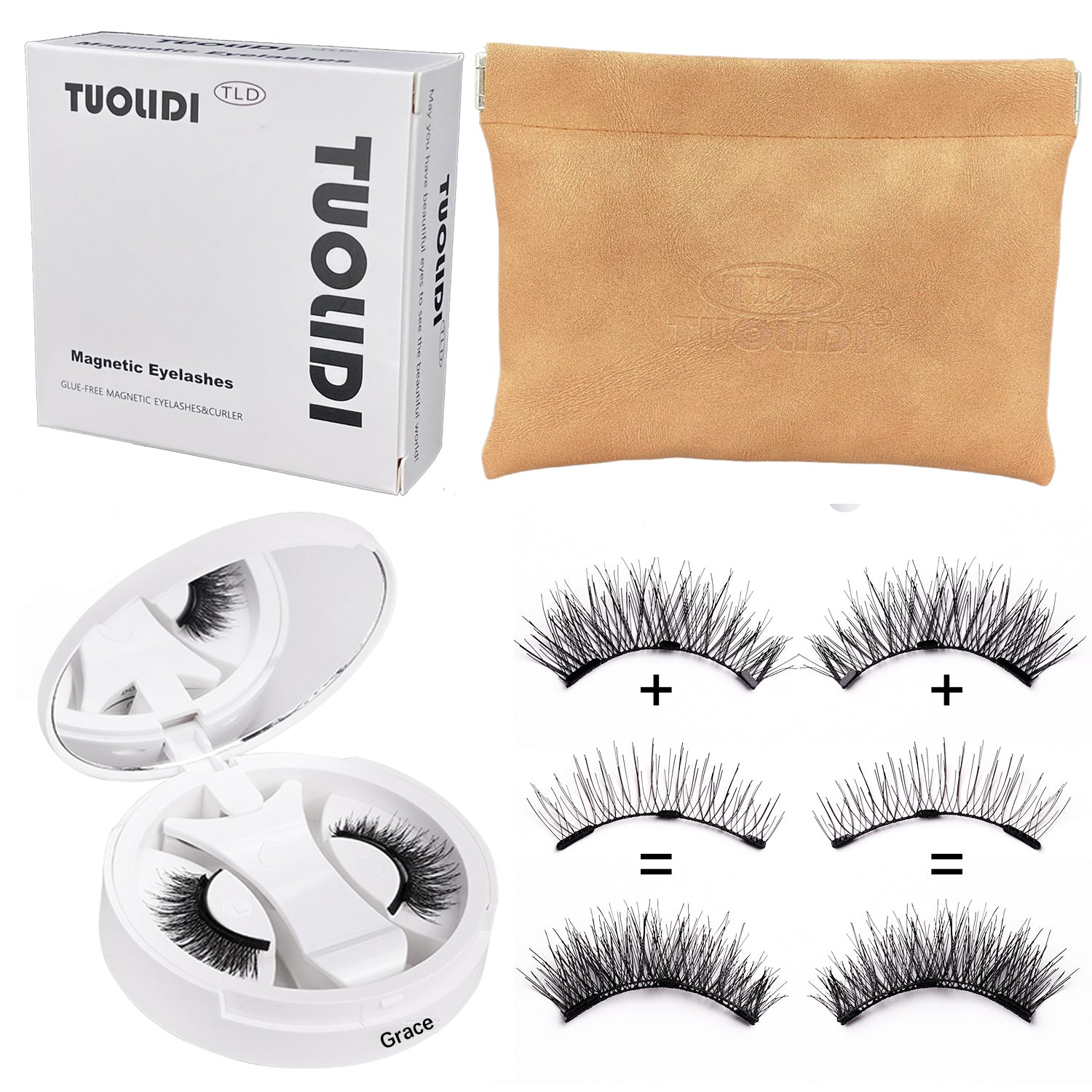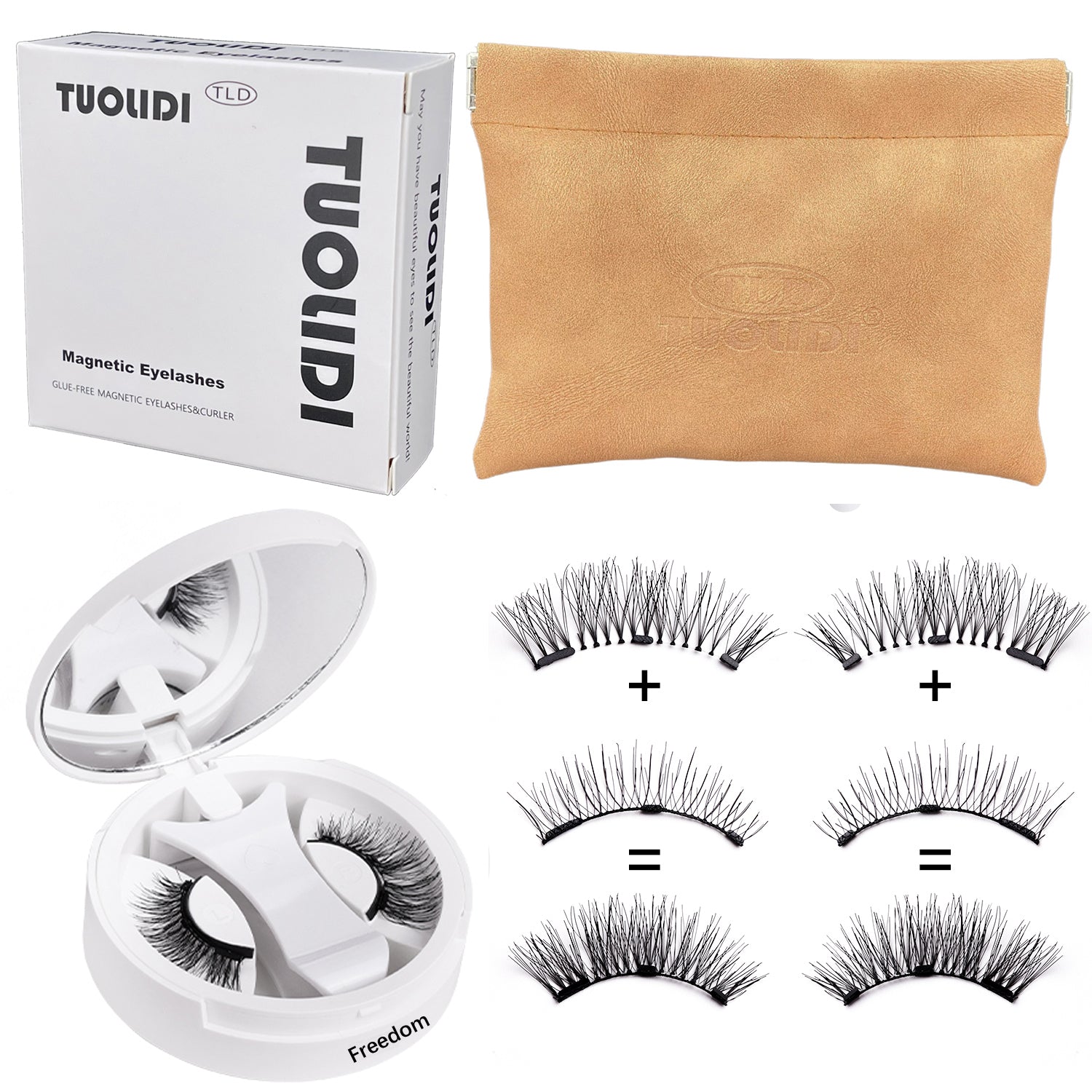 TUOLIDI Magnetic Eyelashes kit Waterproof, Lightweight, Fluffy False Eyelashes set with Leather Storage Bag All-in-One Box, long-lasting, Reusable, Glue-Free, Natural Style Makeup Cosmetic